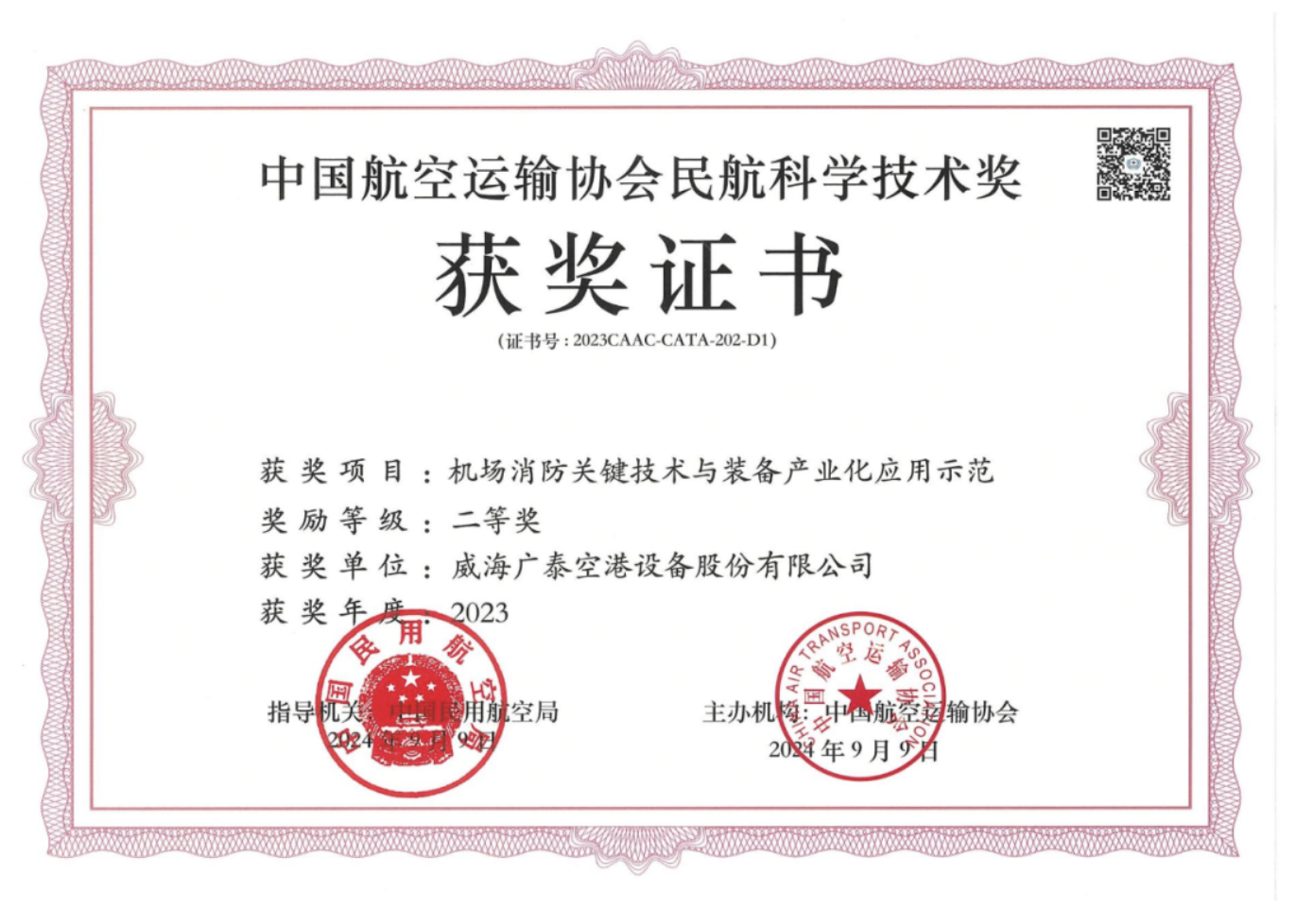 2024年10月25日,民航局第二屆CATA大會在北京召開,會議期間舉行了2022年度和2023年度中國航空運(yùn)輸協(xié)會民航科學(xué)技術(shù)獎頒獎。威海廣泰“機(jī)場消防關(guān)鍵技術(shù)與裝備產(chǎn)業(yè)化應(yīng)用示范”和“智能萬向傳輸航空貨運(yùn)裝載設(shè)備關(guān)鍵技術(shù)開發(fā)與應(yīng)用”項目分別榮獲“2023年度中國航空運(yùn)輸協(xié)會民航科學(xué)…