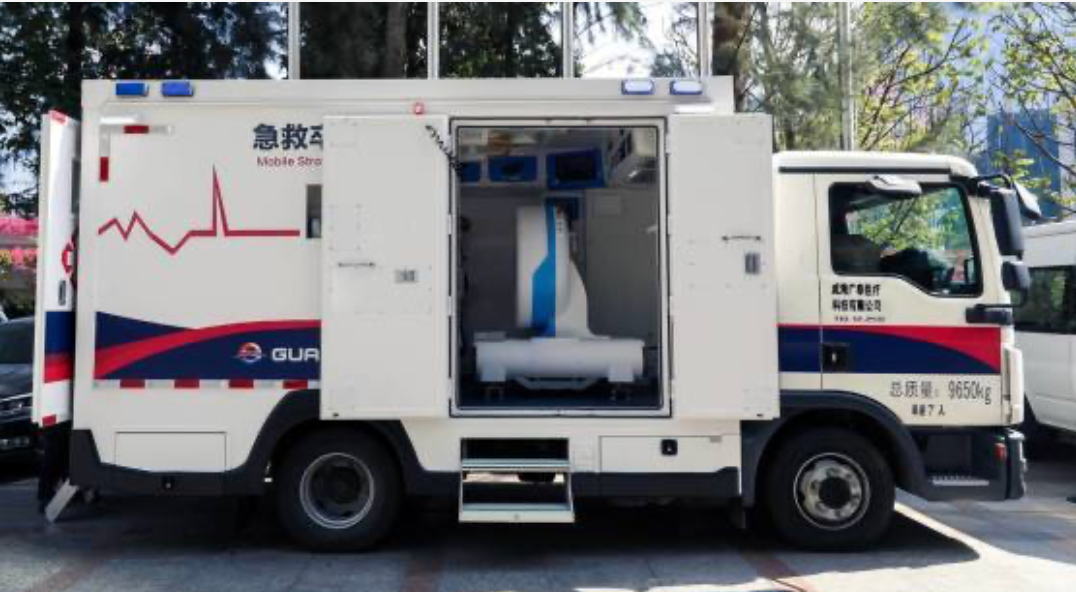 5G移動(dòng)卒中單元是將移動(dòng)CT和相關(guān)的檢驗(yàn)儀器配備在救護(hù)車上,在5G網(wǎng)絡(luò)下,形成集神經(jīng)癥狀學(xué)檢查、CT診斷和靜脈溶栓治療為一體的救治單元。