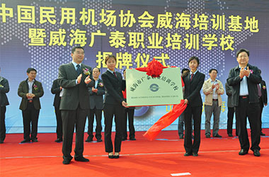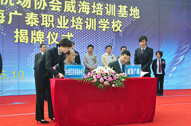 2015年10月,威海廣泰與中國(guó)民用機(jī)場(chǎng)協(xié)會(huì)聯(lián)合在威海廣泰職業(yè)培訓(xùn)學(xué)校成立“中國(guó)民用機(jī)場(chǎng)協(xié)會(huì)威海培訓(xùn)基地”,整合優(yōu)勢(shì)資源,互利共贏,共同打造空港地面設(shè)備從業(yè)人員職業(yè)化培訓(xùn)平臺(tái),進(jìn)一步拓寬了師資渠道和培訓(xùn)力量,提高培訓(xùn)質(zhì)量和實(shí)效性,對(duì)推進(jìn)我國(guó)機(jī)場(chǎng)從業(yè)人員資質(zhì)能力培訓(xùn)的系統(tǒng)化、標(biāo)準(zhǔn)化,具有重要意義。